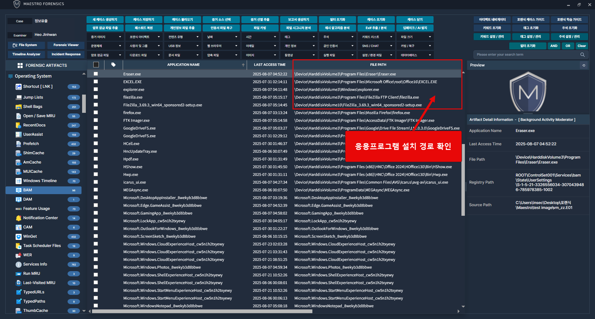 실행 또는 설치된 응용프로그램 경로 추적 가능
