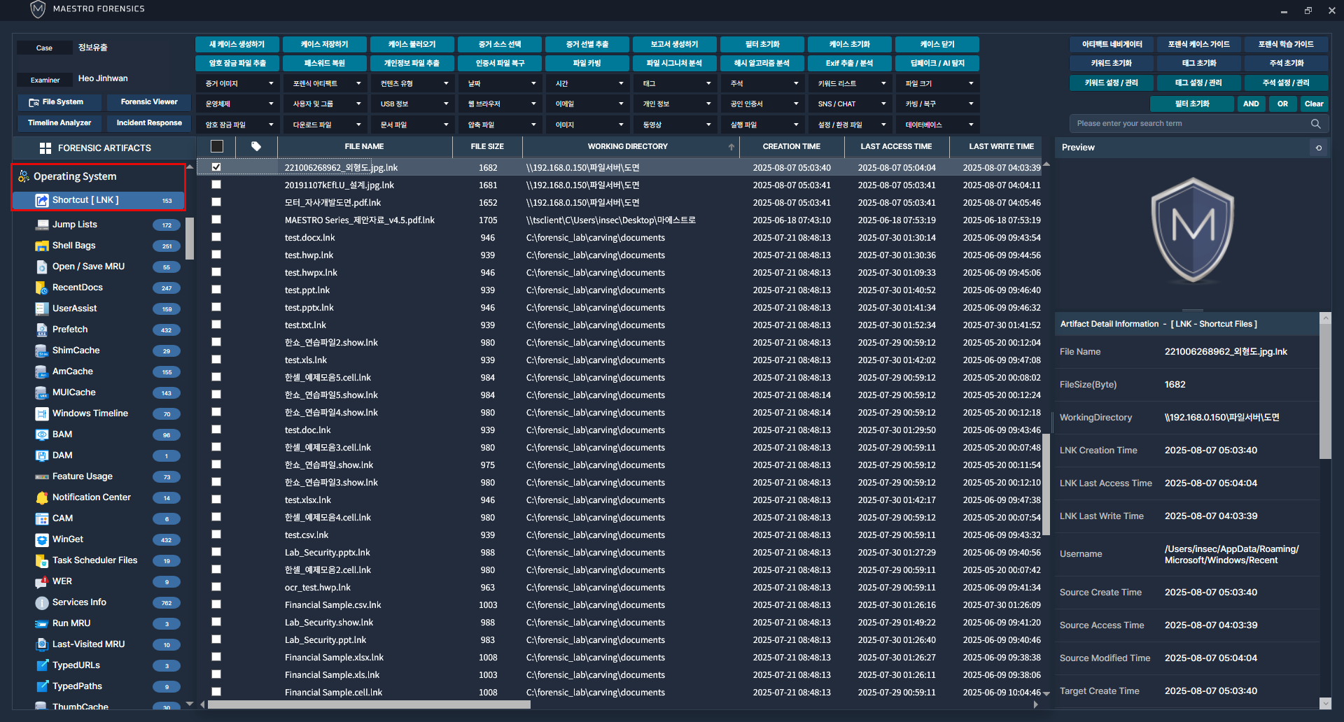 수집 완료된 결과는 [운영체제] - [Shortcut[Lnk]] 카테고리를 통해 확인 가능