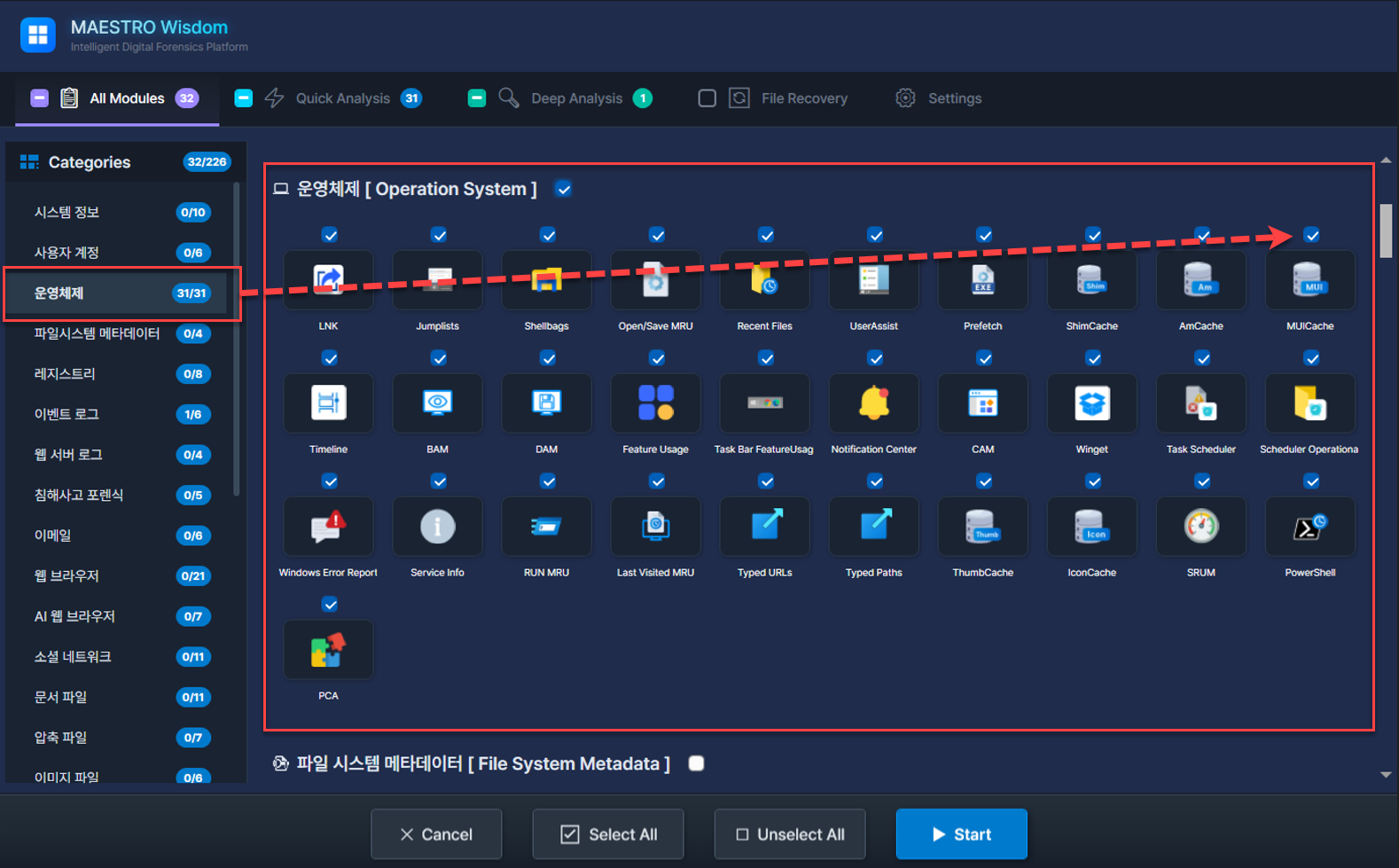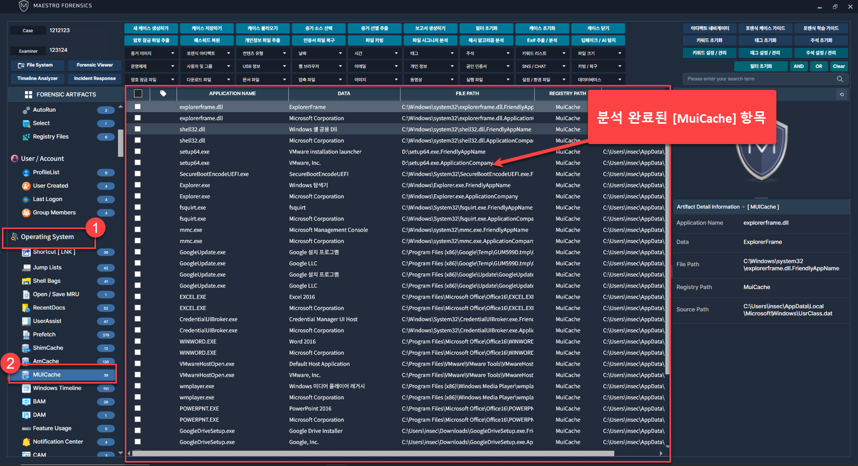 WiSDOM Windows에서 MuiCache 아티팩트는 [ 운영체제 ] 그룹에 포함되어 있으며