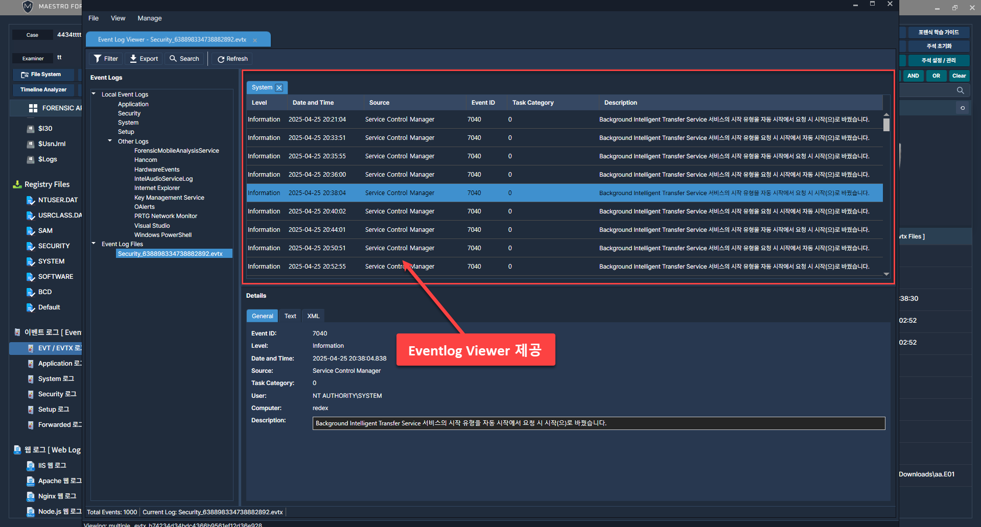 Eventlog Viewer를 통해 상세 분석 가능