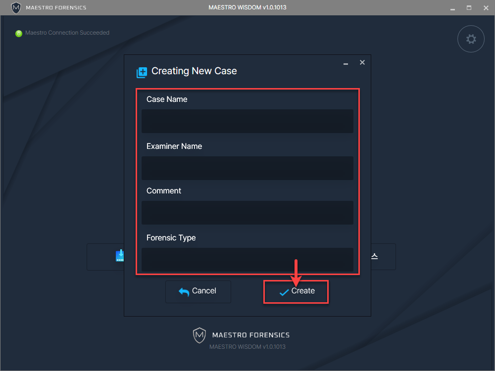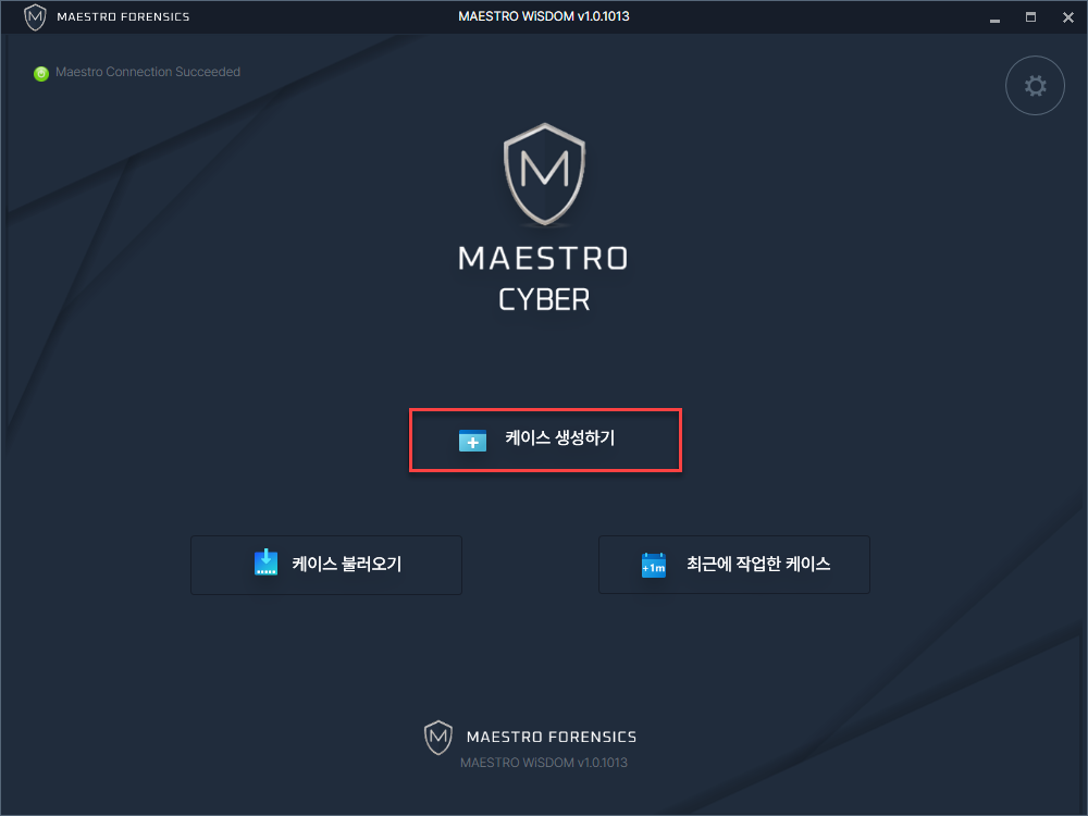 MAESTRO WiSDOM을 통해 분석할 신규 케이스를 생성하기 위해 [ 케이스 생성하기 ] 버튼을 클릭합니다.