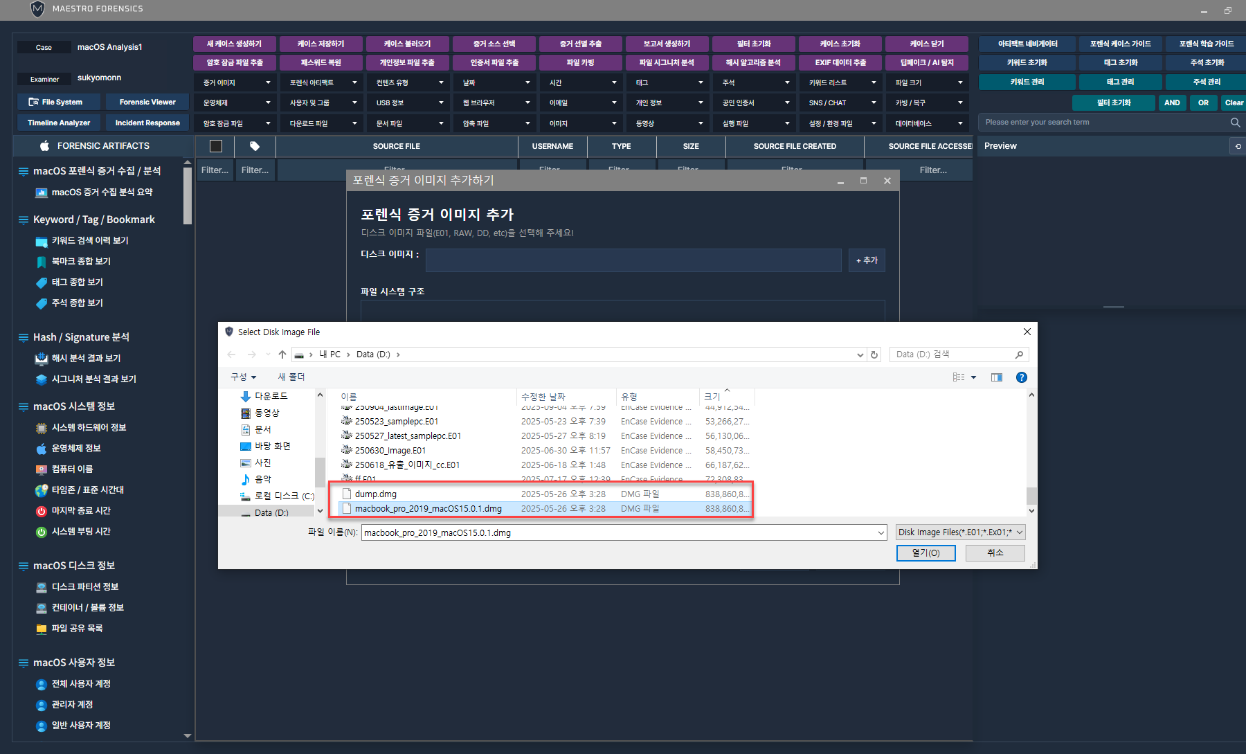 이미지 파일을 선택 후 증거 데이터를 불러오기 가능 합니다.