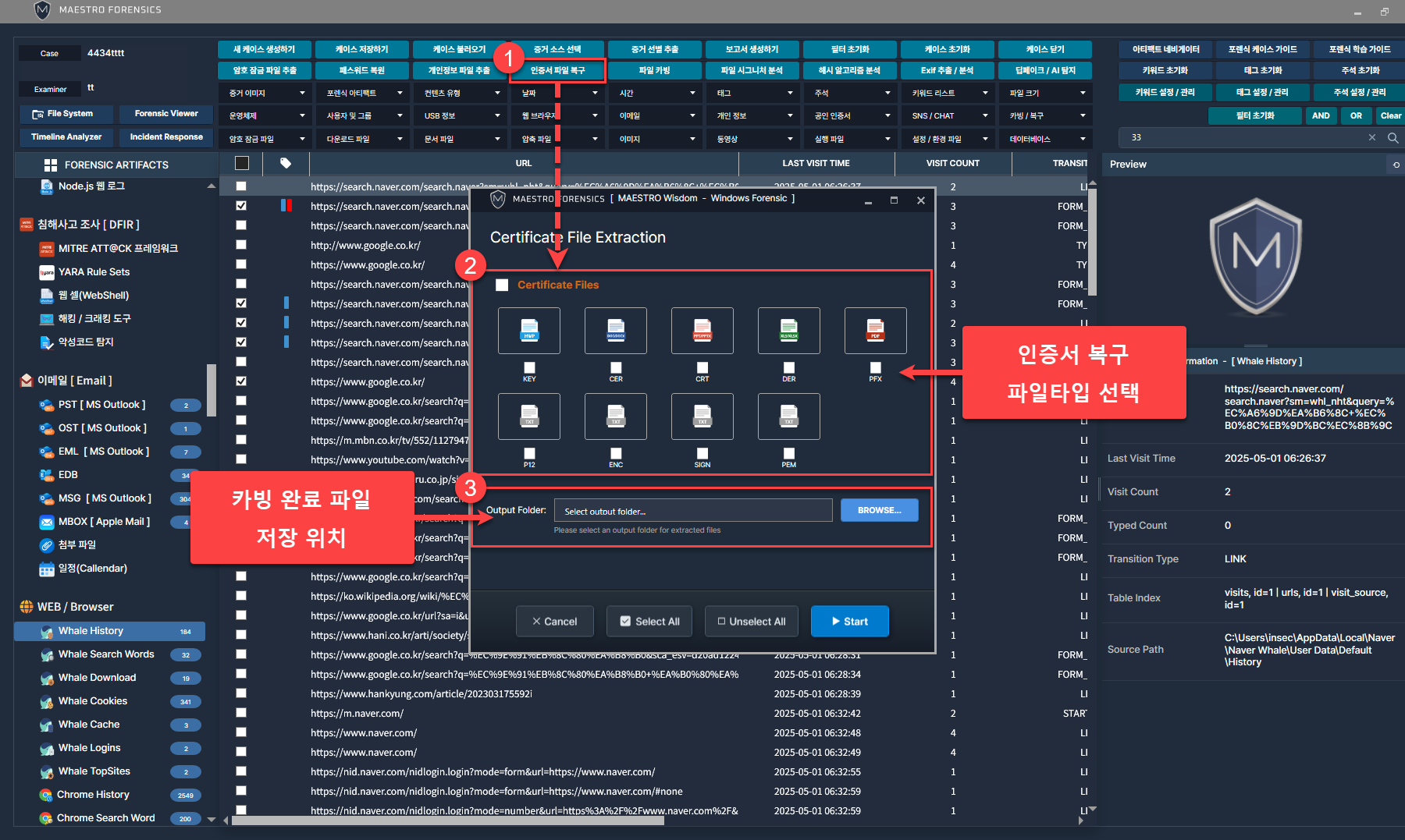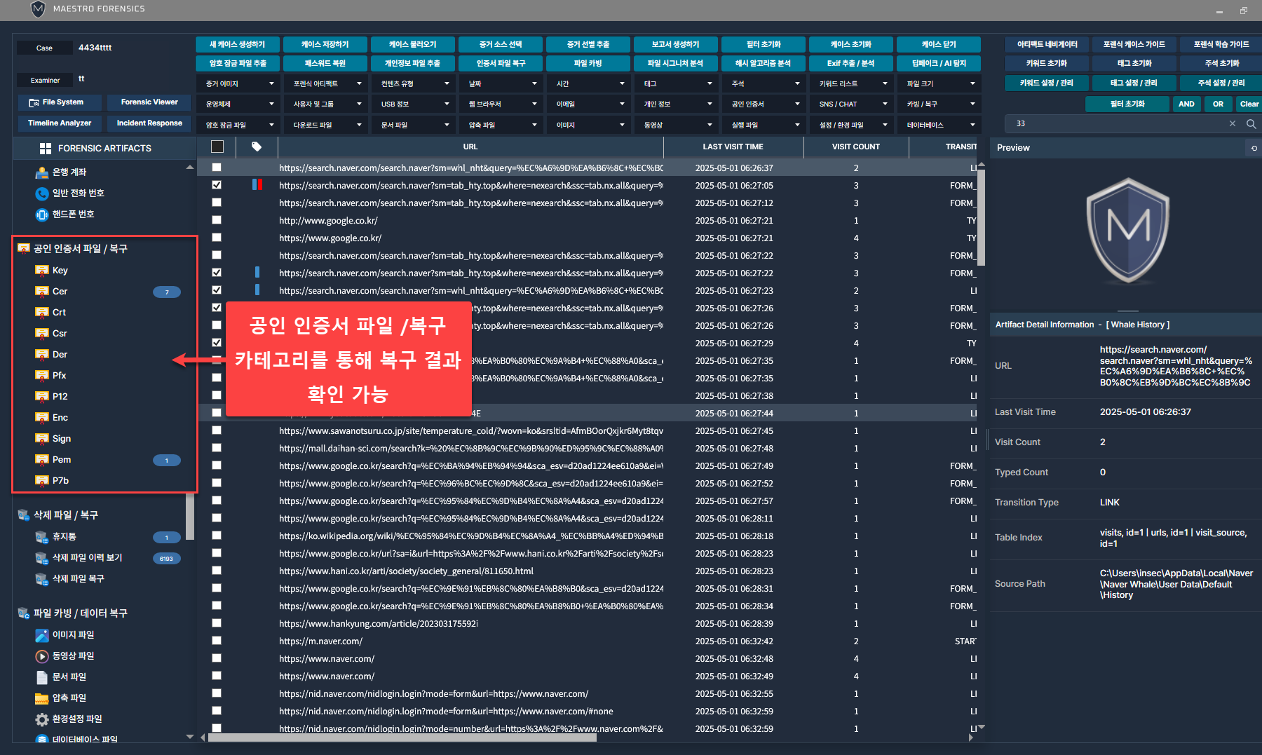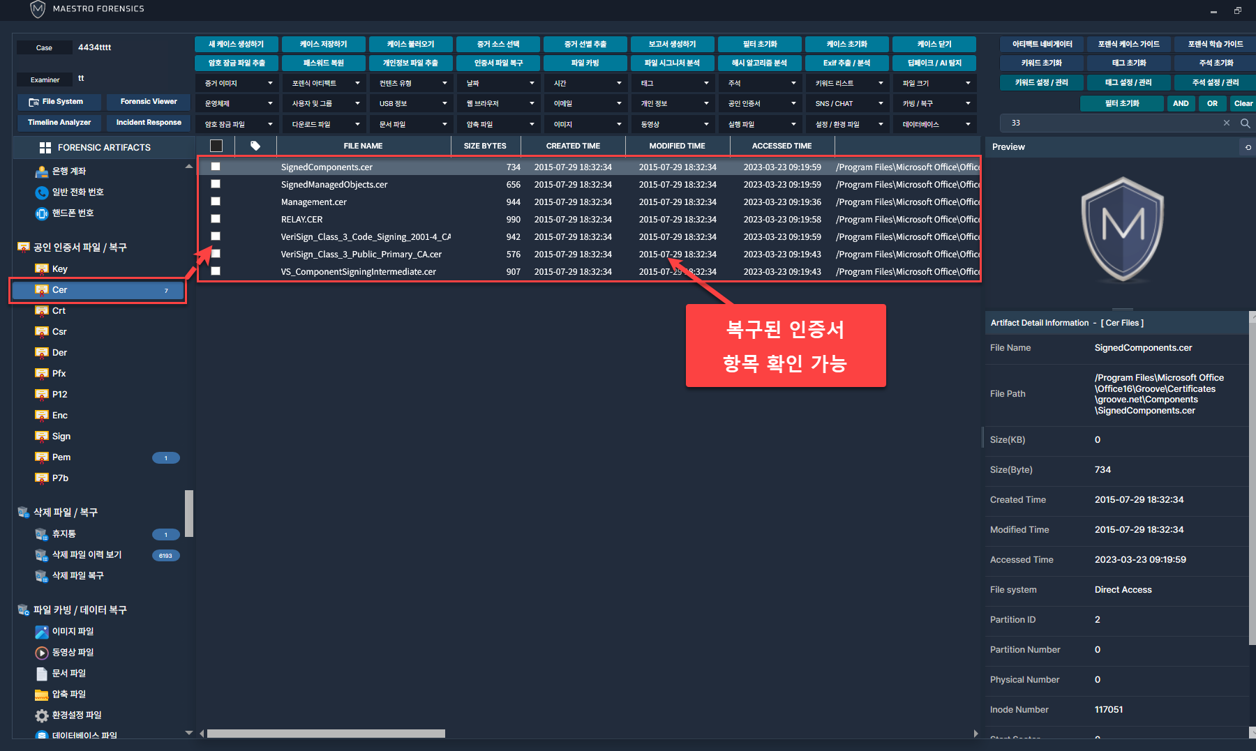 MAESTRO WiSDOM 다양한 인증서 파일 복구 및 카빙 기능 지원