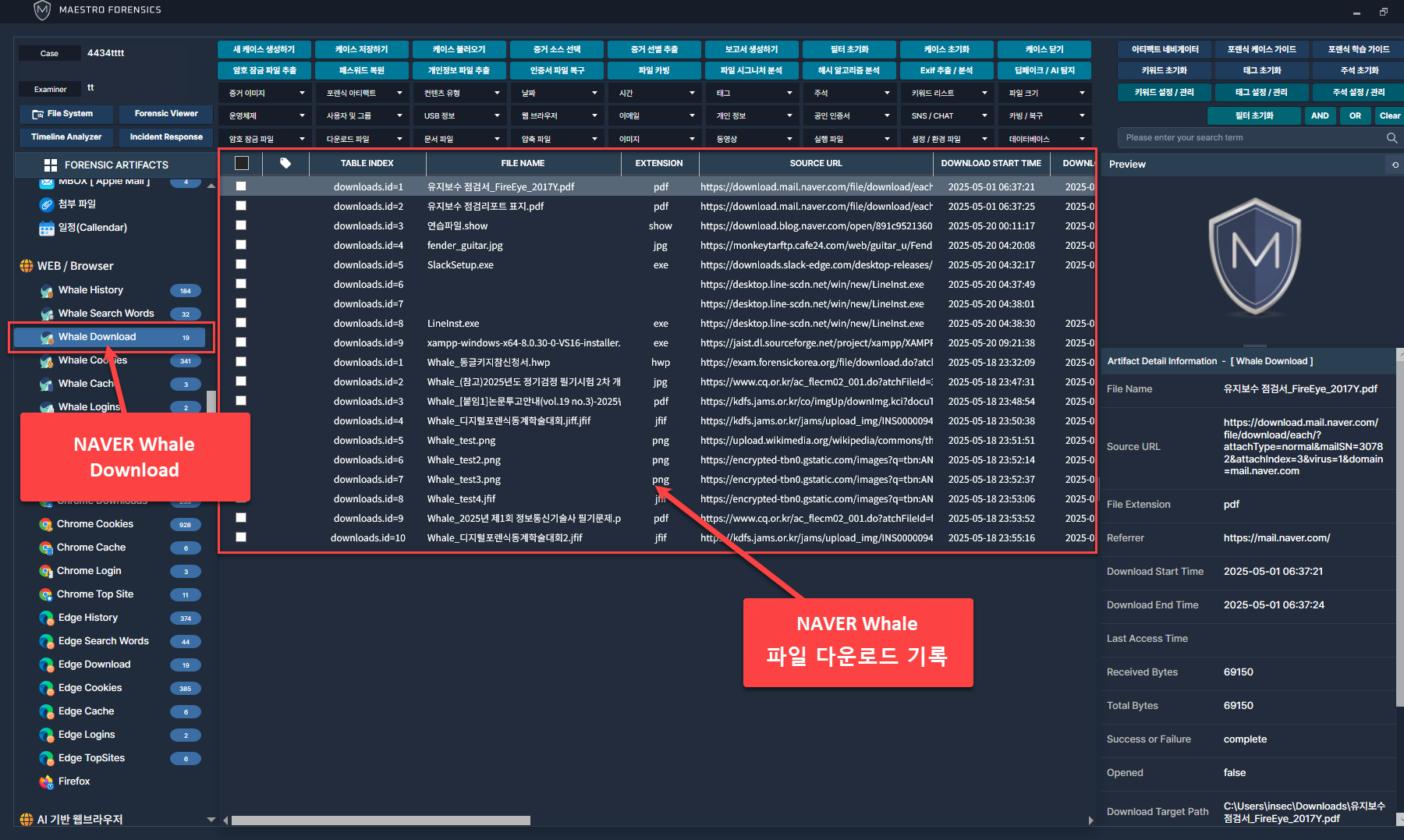 네이버 웨일 브라우저를 통해 다운로드 받은 파일 리스트 분석 가능.
