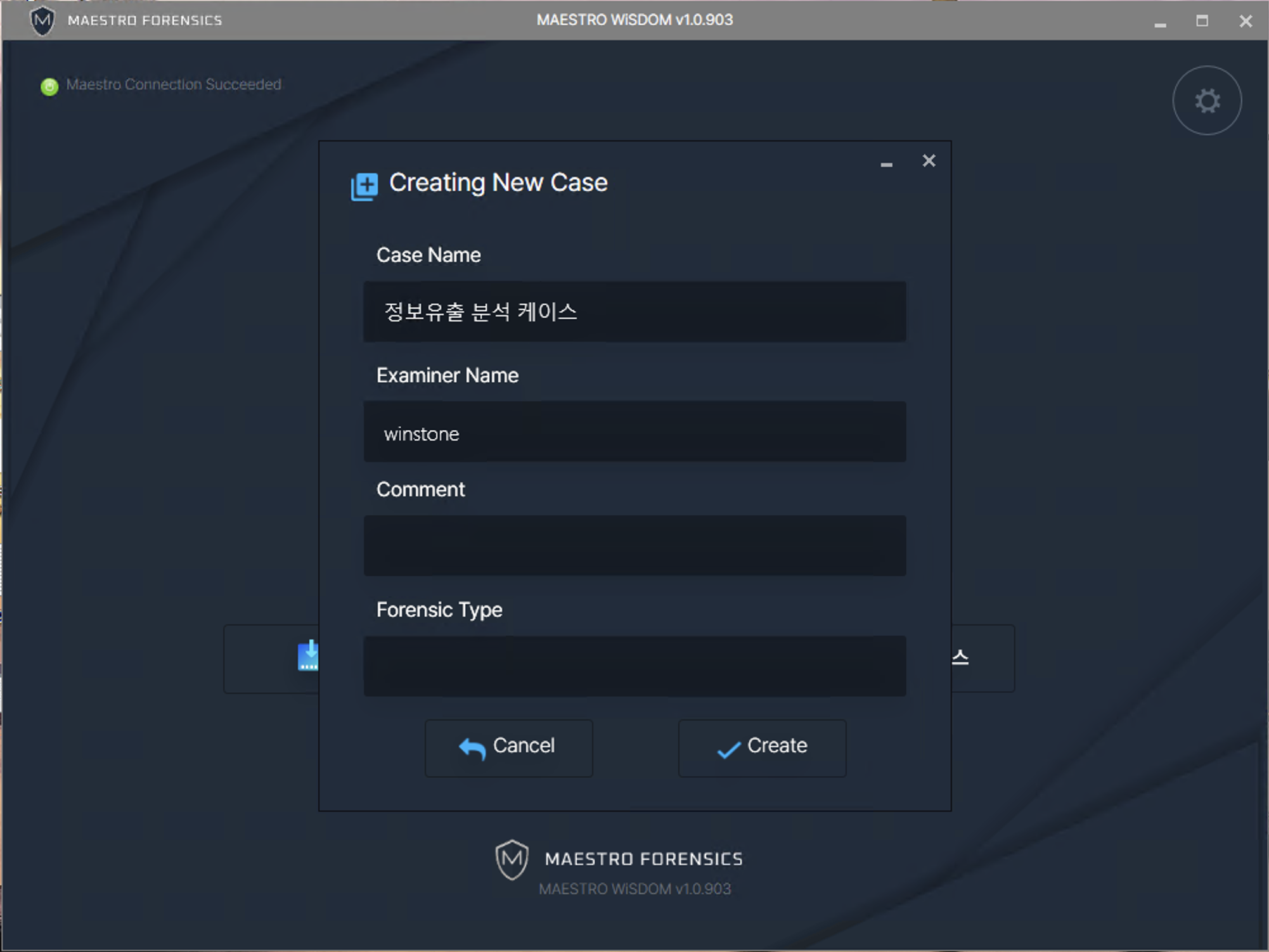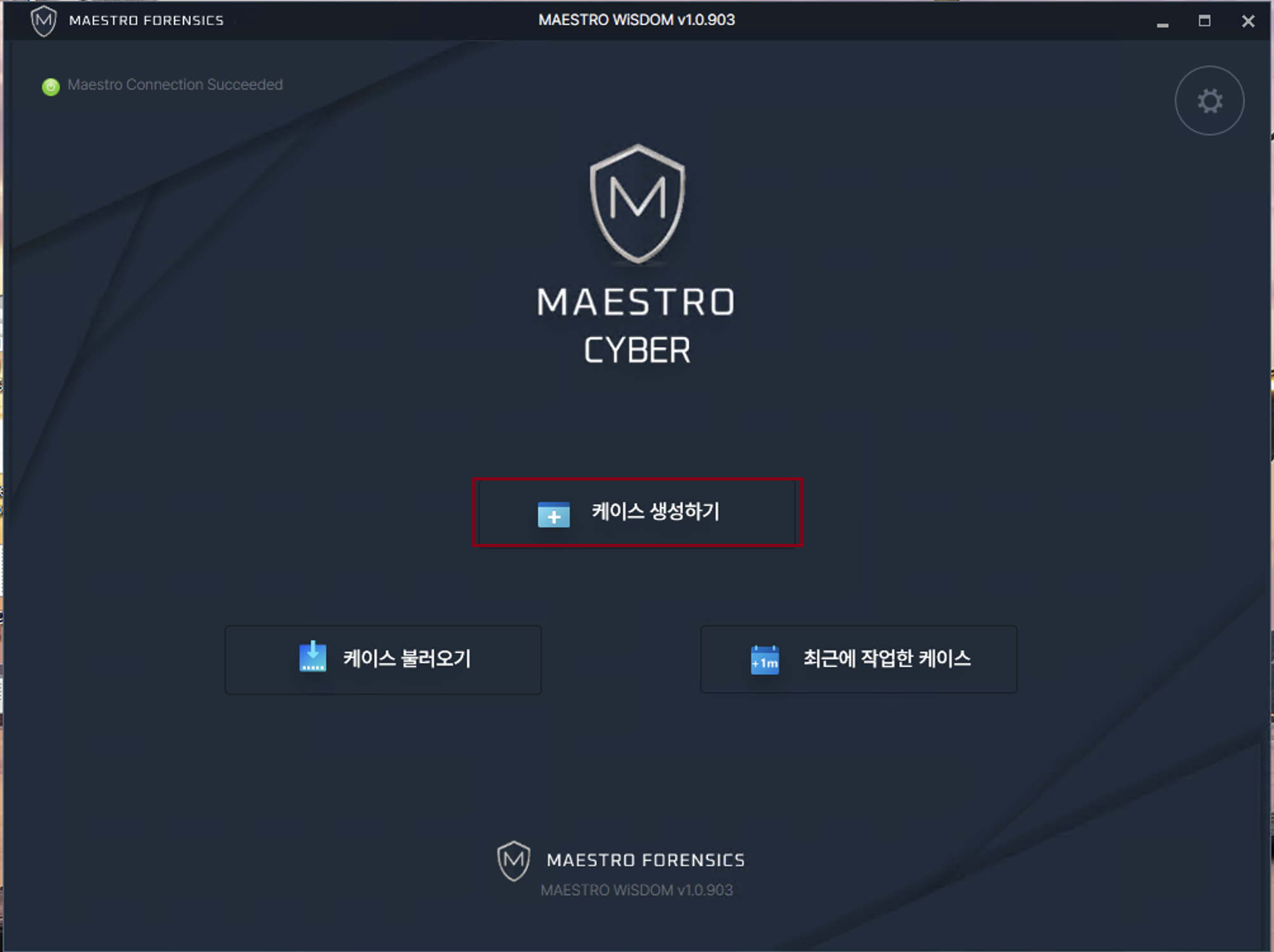 MAESTRO WiSDOM을 통해 분석할 신규 케이스를 생성하기 위해 [ 케이스 생성하기 ] 버튼을 클릭합니다.