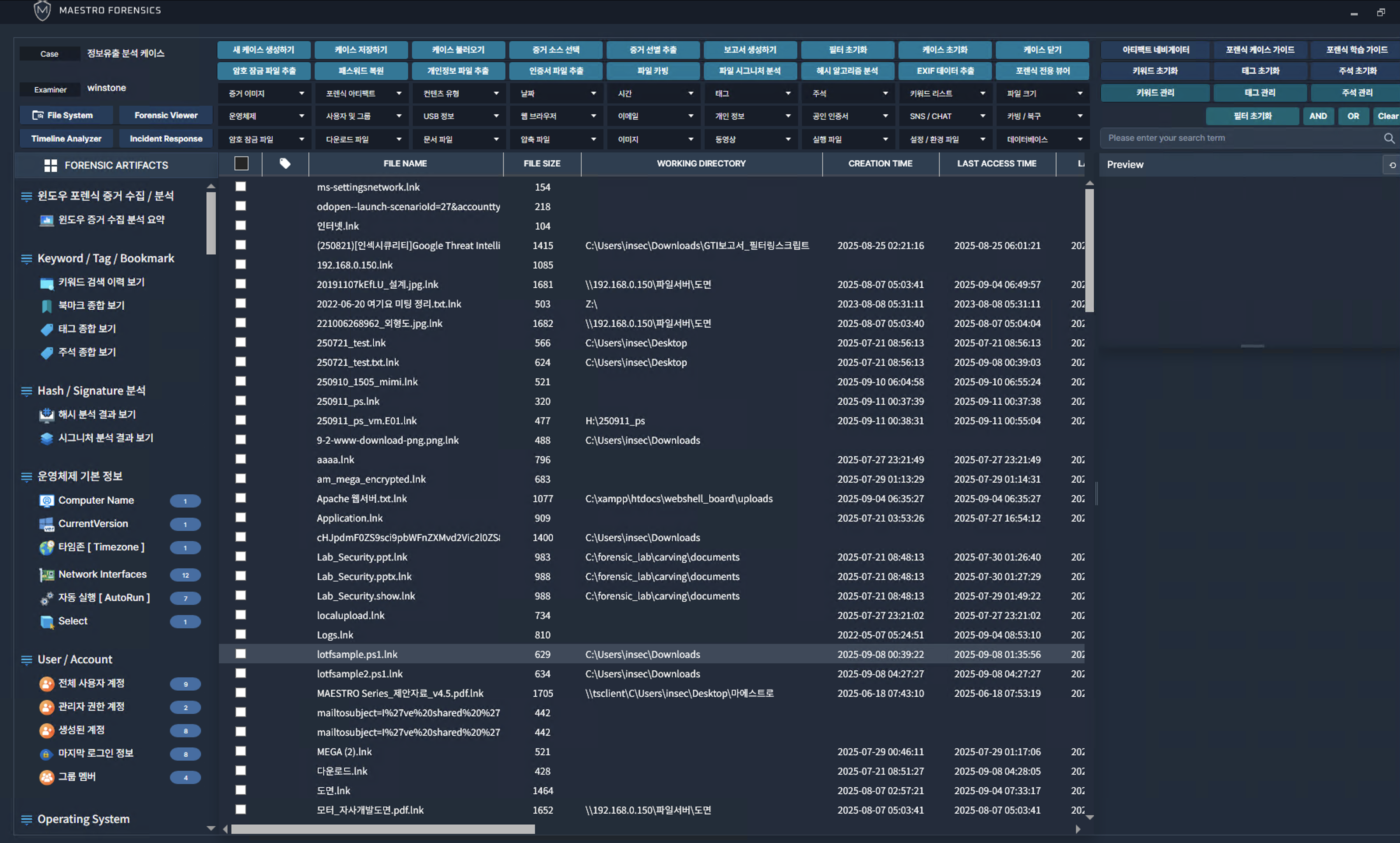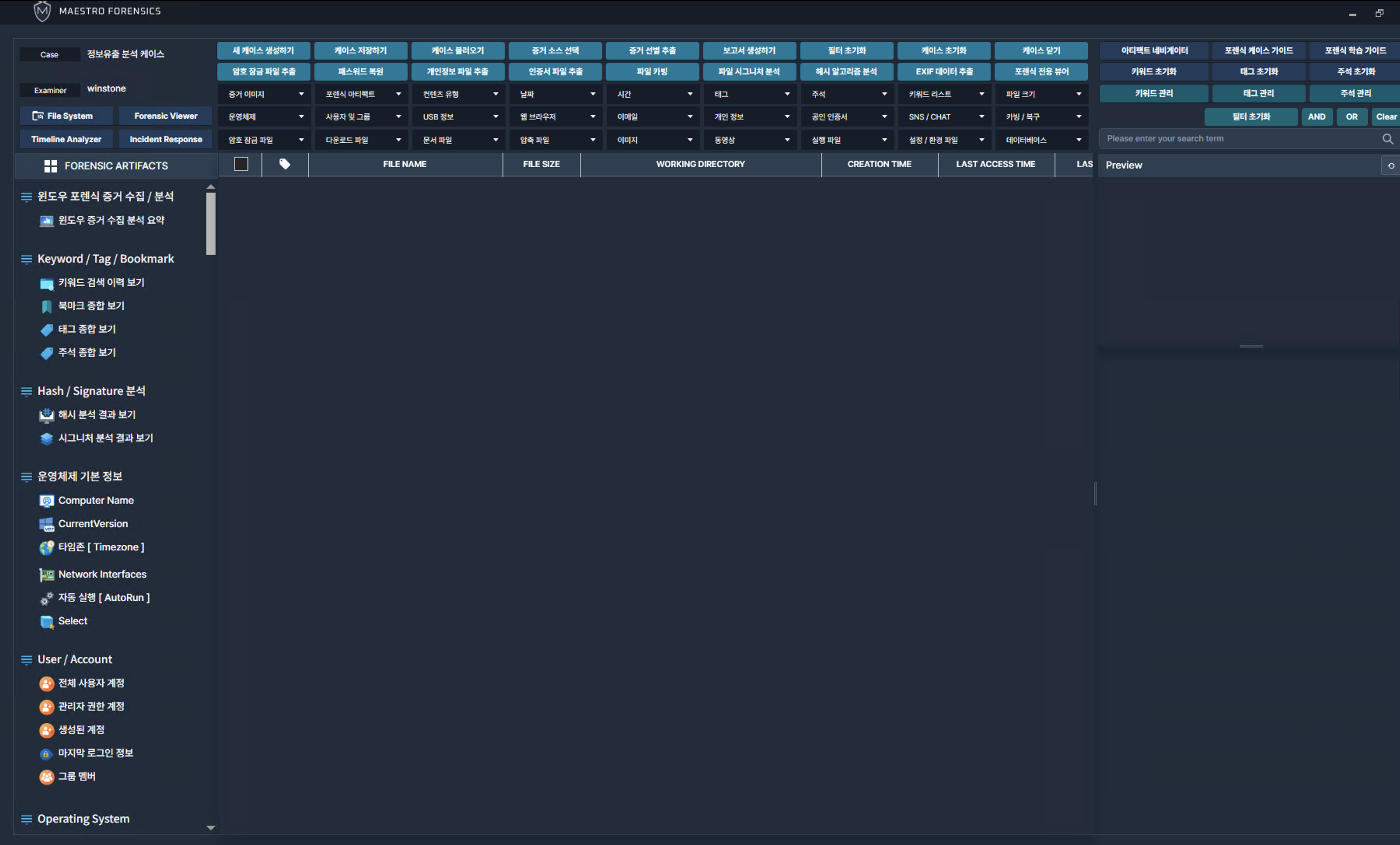 파일 시스템 레벨의 로우데이터 분석과, 수집 시간이 비교적 긴 아티팩트를 수집할 때 활용합니다.