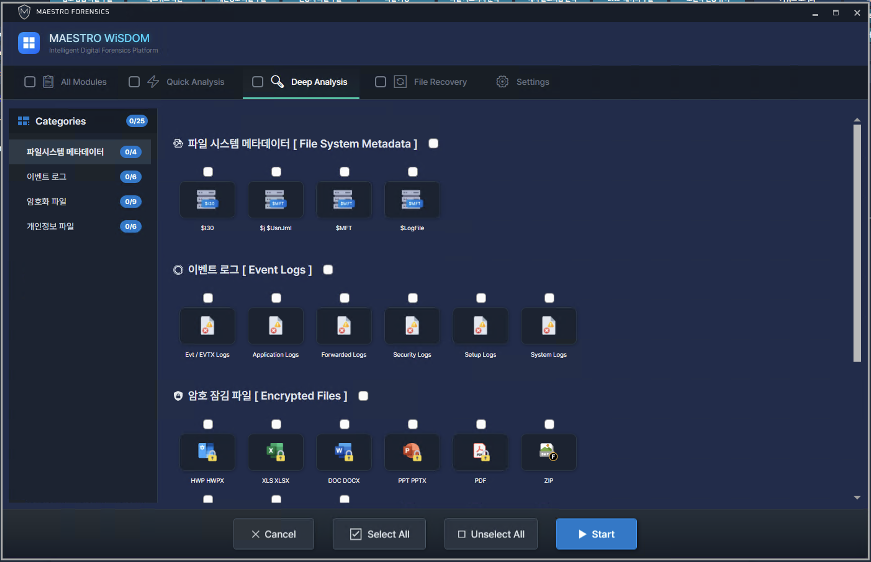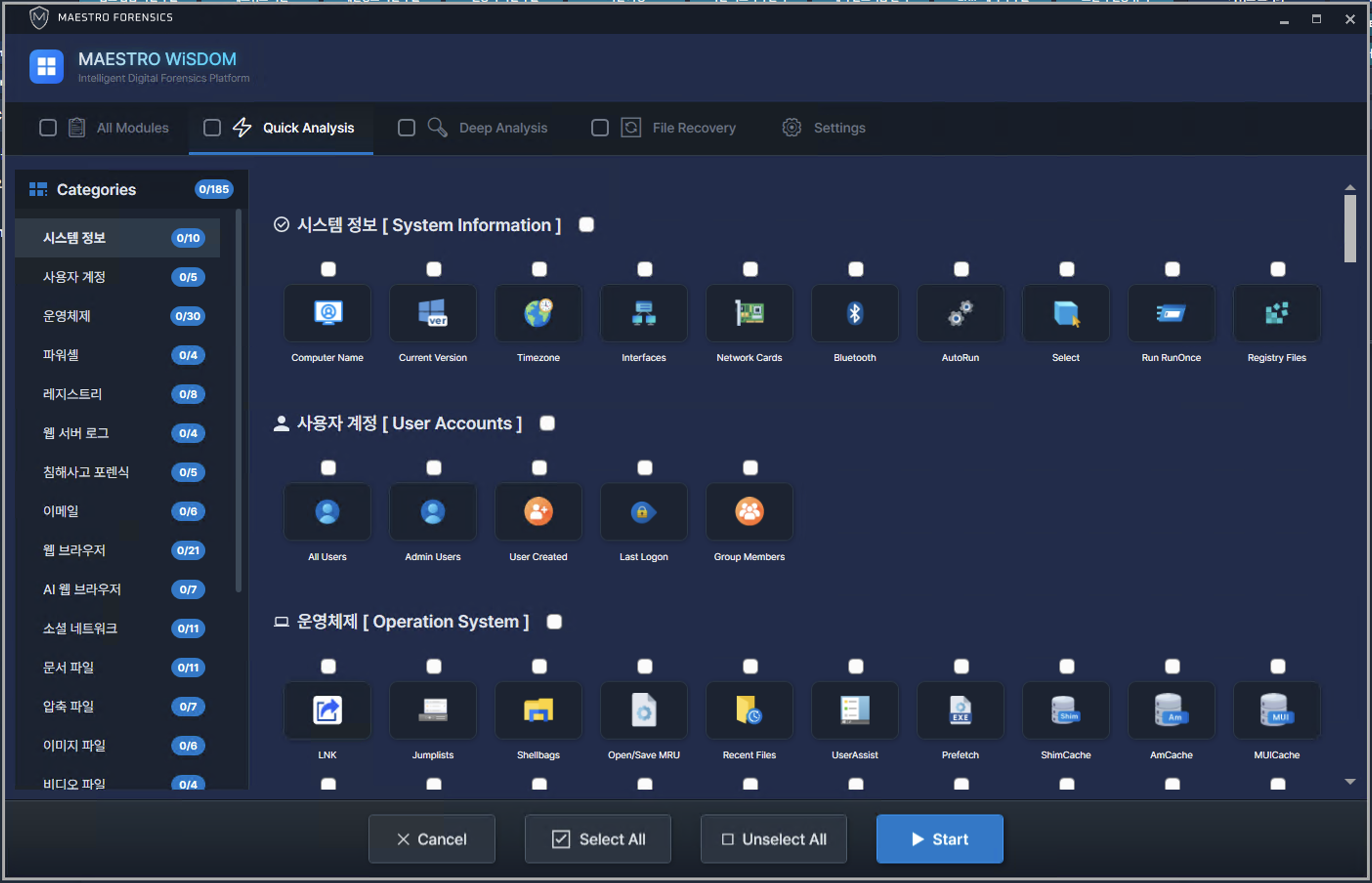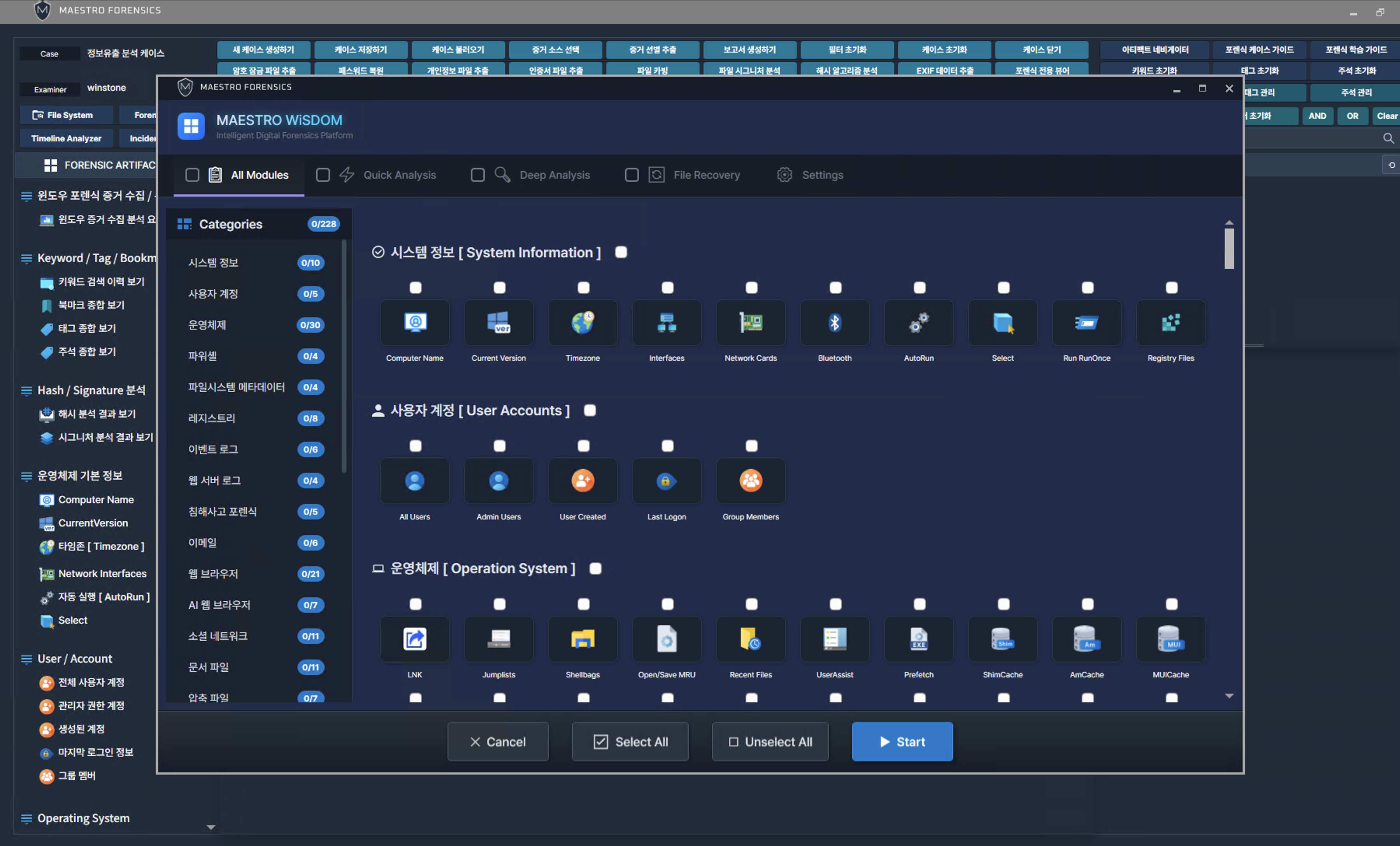 MAESTRO WiSDOM의 전체 모듈 중 수집 속도가 빠른 항목으로 분류된 아티팩트 리스트입니다.