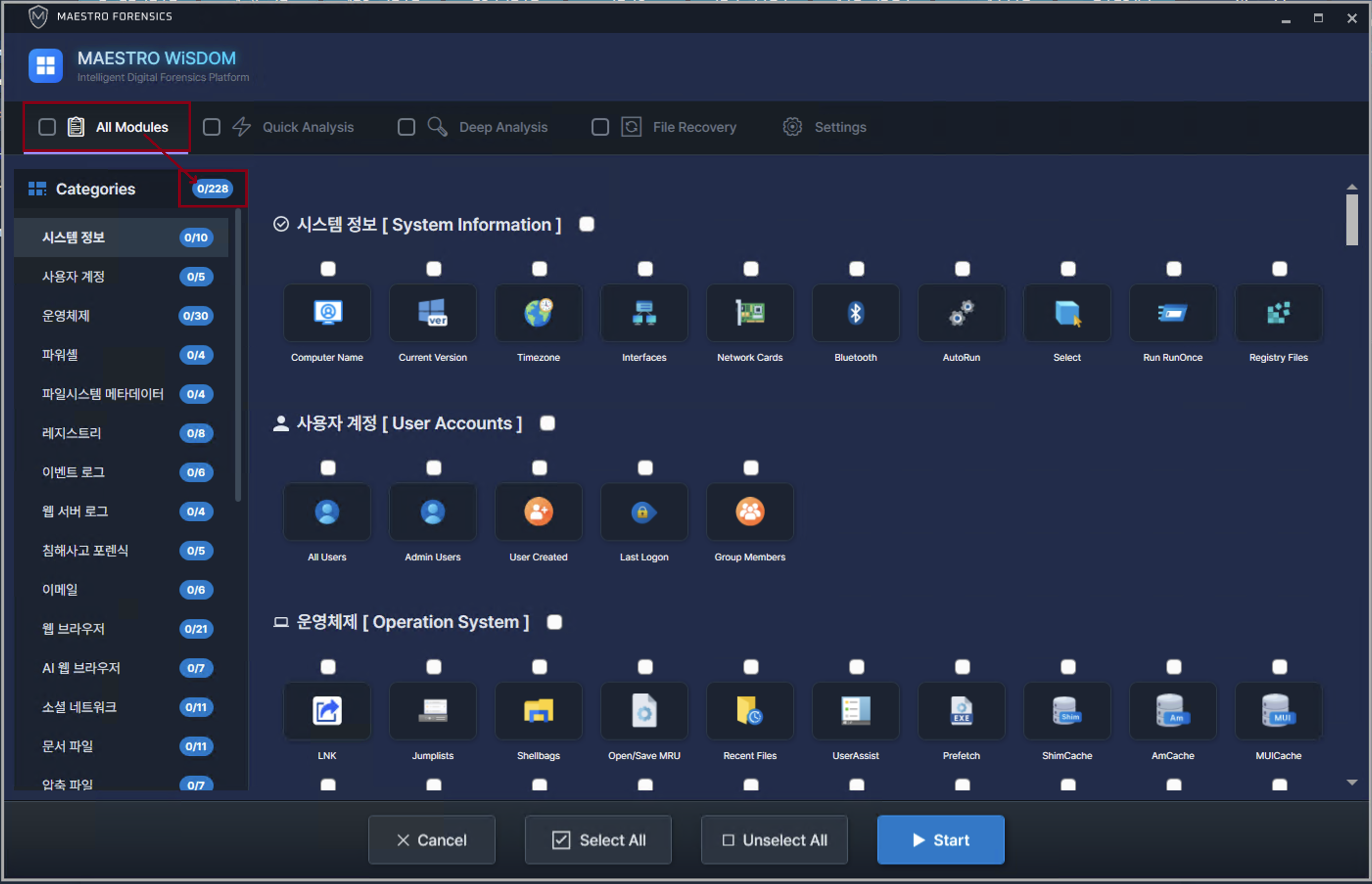 MAESTRO WiSDOM에서 제공하는 전체 모듈입니다.