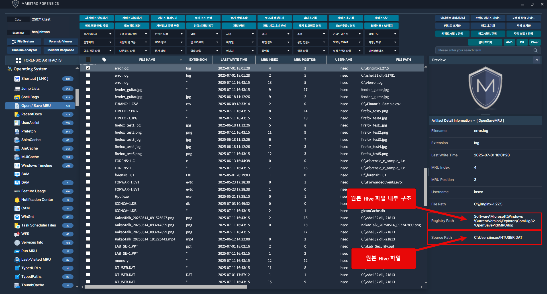 해당 정보를 추출한 원본 파일의 경로 확인 가능.