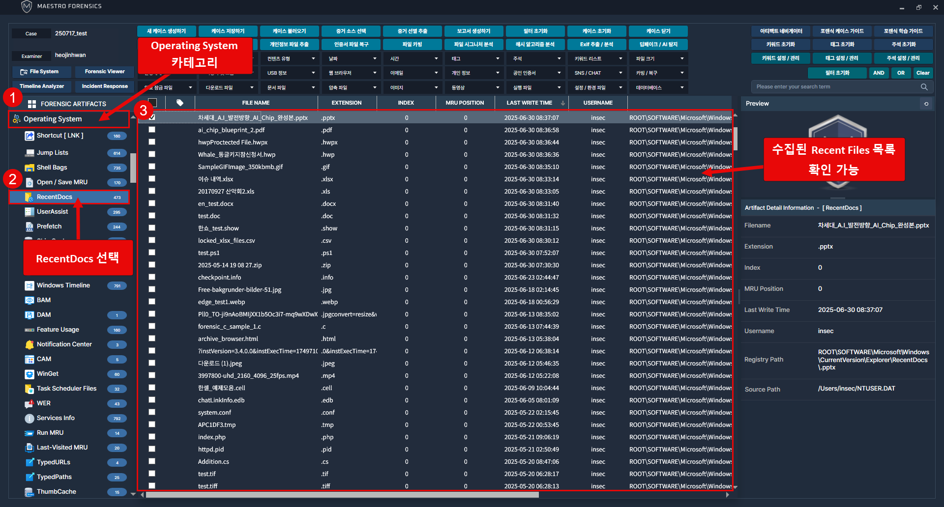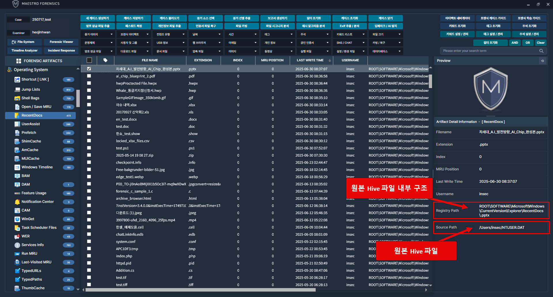 해당 정보를 추출한 원본 파일의 경로 확인 가능.