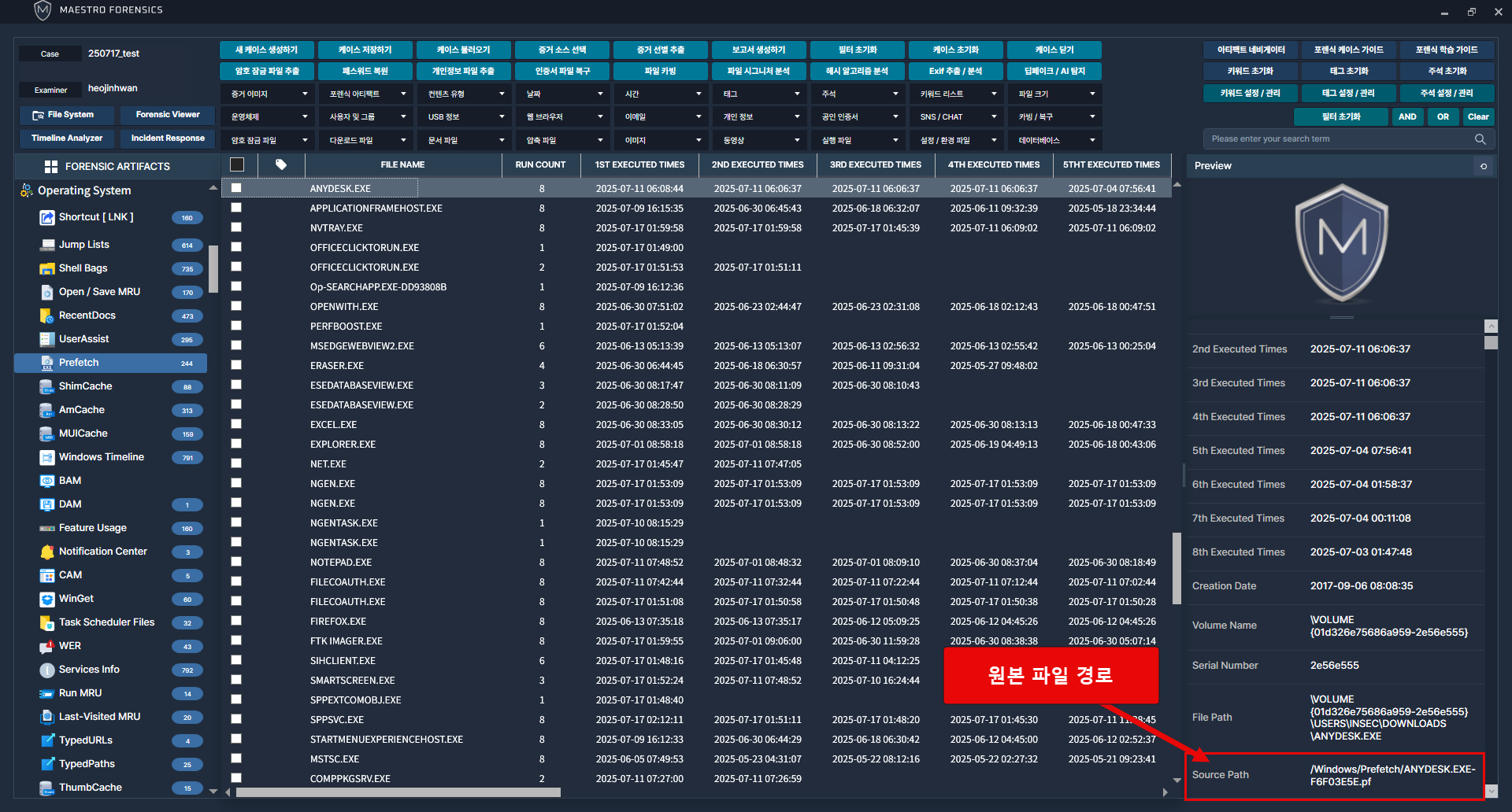 해당 정보를 추출한 원본 파일의 경로 확인 가능.