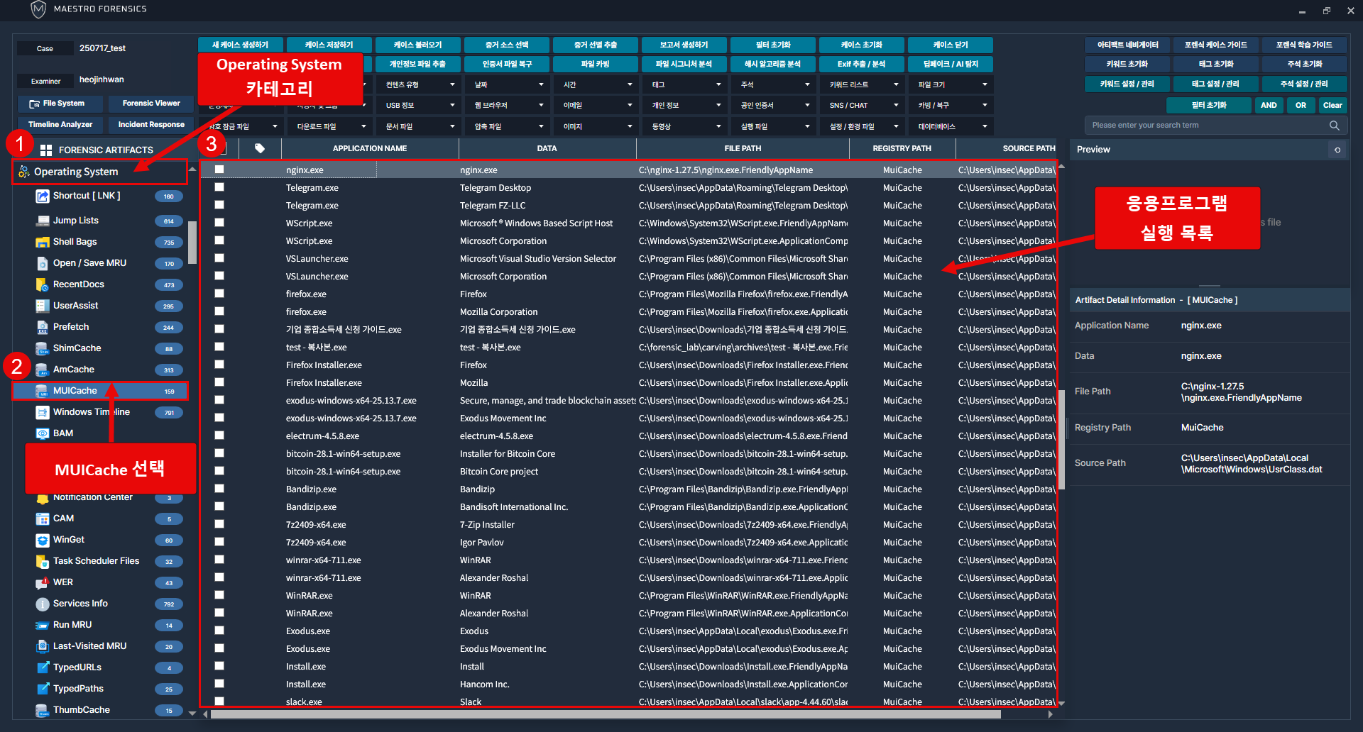응용프로그램 실행 흔적을 추적하기 위해 MUICache 항목을 분석합니다.