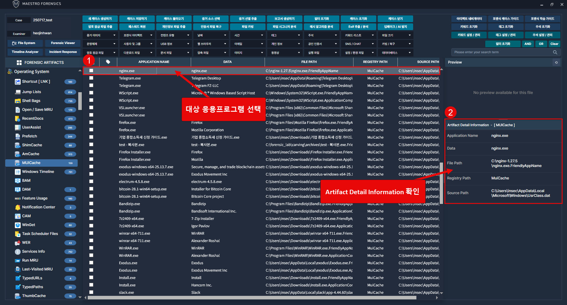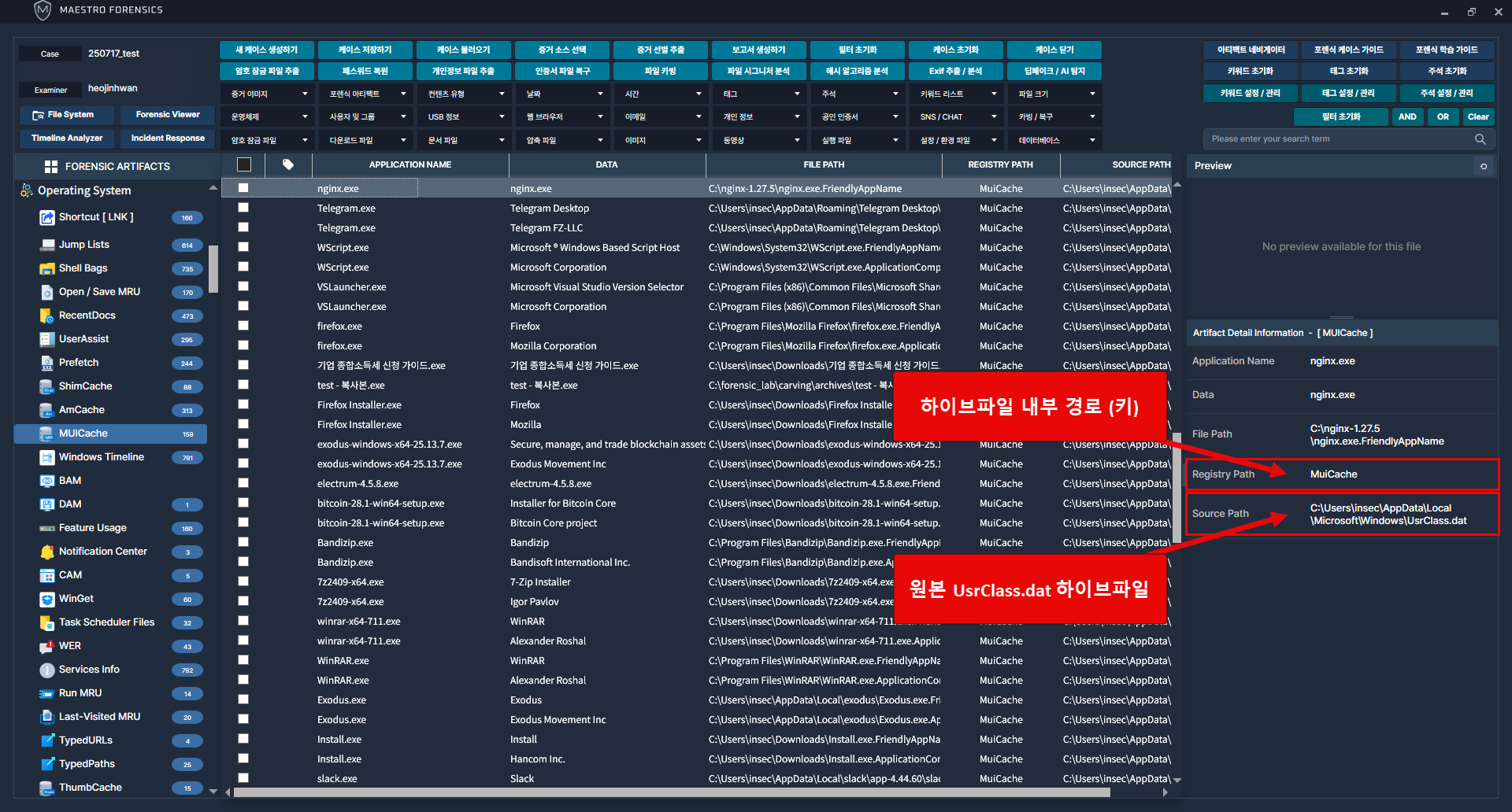 해당 정보를 추출한 원본 파일의 경로 확인 가능.