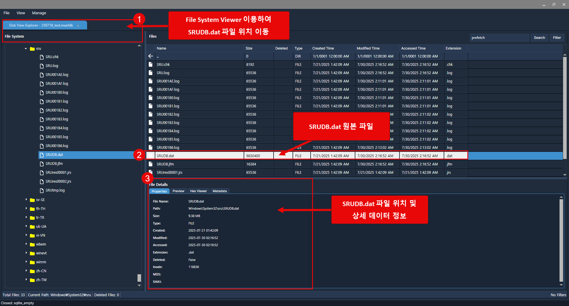 wisdom의 [파일 시스템 뷰어]를 통해 SRUM의 원본 ESE Database 및 메타데이터 정보 제공